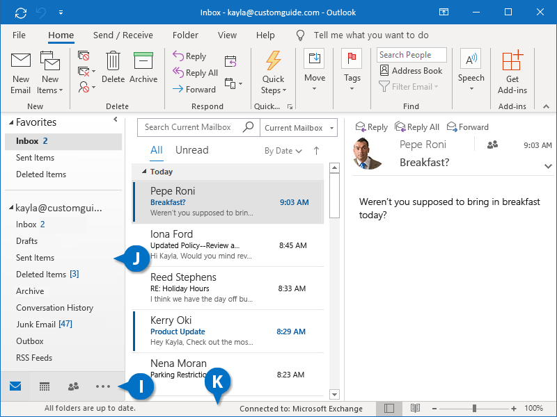 The outlook navigation bar allows you to switch between the various areas of outlook, such as mail, calendar, contacts, tasks, and notes.